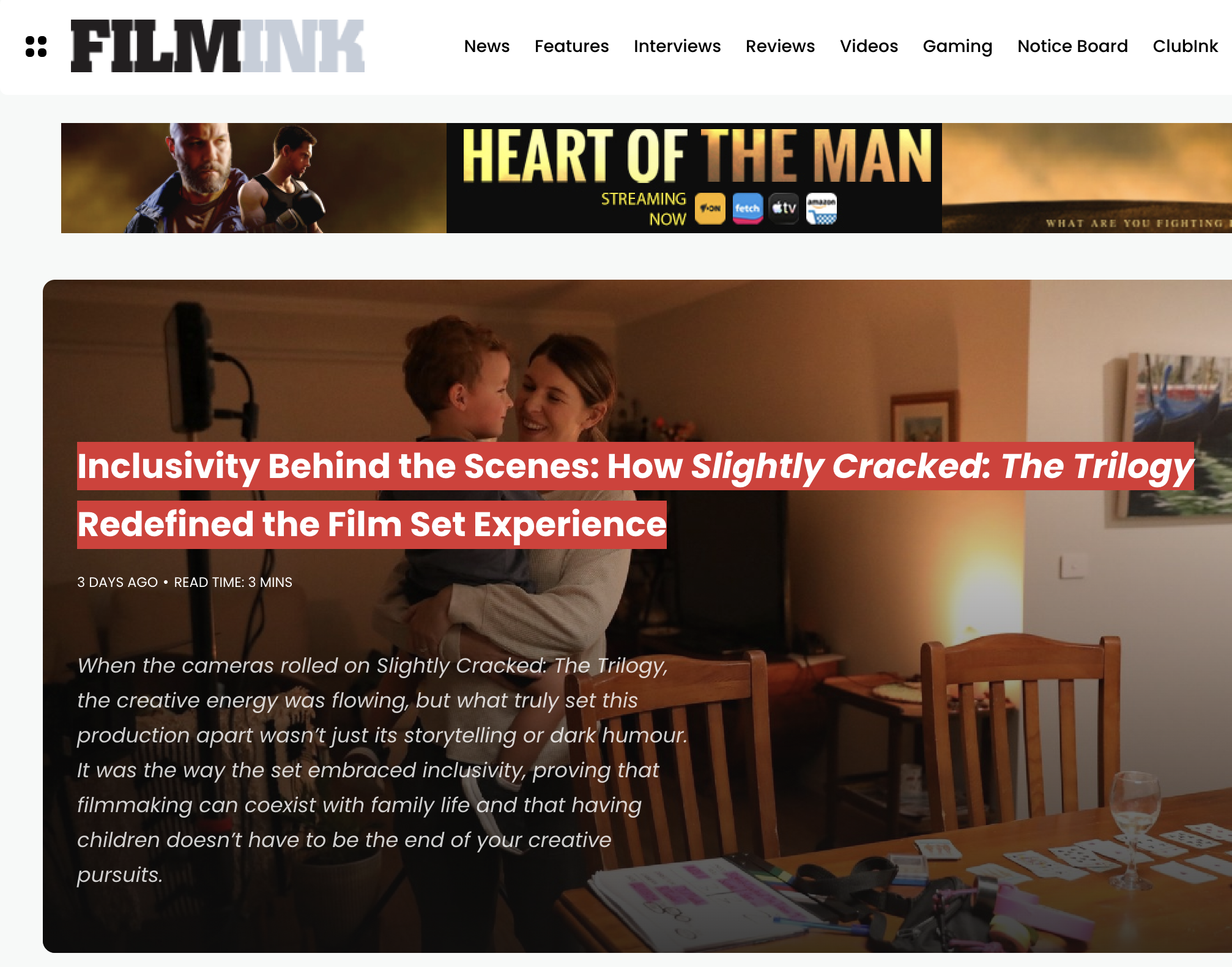 When the cameras rolled on Slightly Cracked: The Trilogy, the creative energy was flowing, but what truly set this production apart wasn’t just its storytelling or dark humour. It was the way the set embraced inclusivity, proving that filmmaking can coexist with family life and that having children doesn’t have to be the end of your creative pursuits.